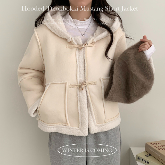 [겨울신상/귀여움가득!] 렌틸 뽀글 양털 후드 무스탕 떡볶이 숏코트 자켓 (2color)