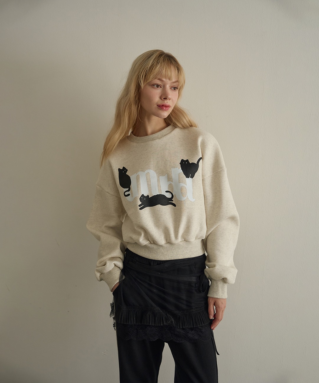 블랙 캣 맨투맨(오트밀)