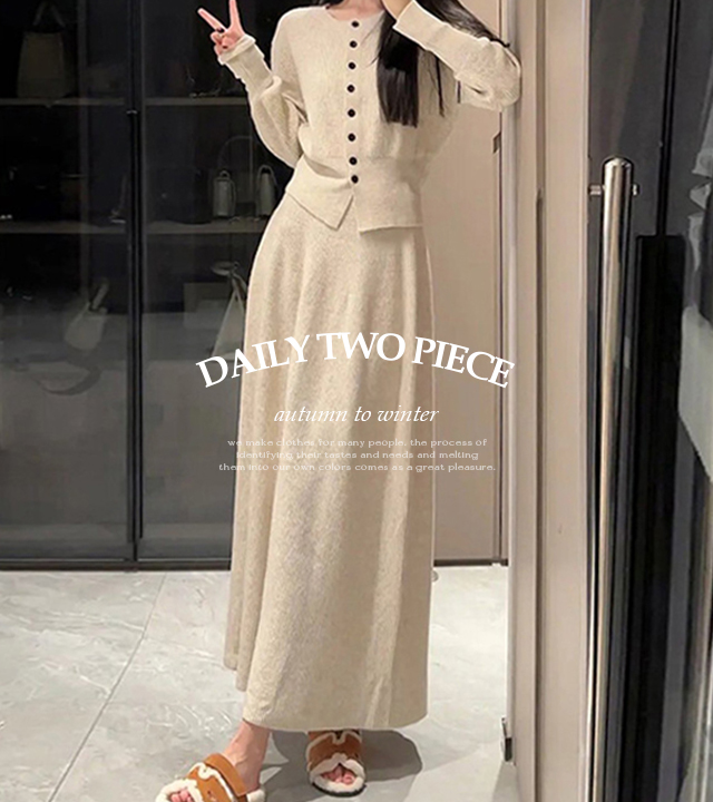 니트 가디건 롱 스커트 세트 루미엘투피스