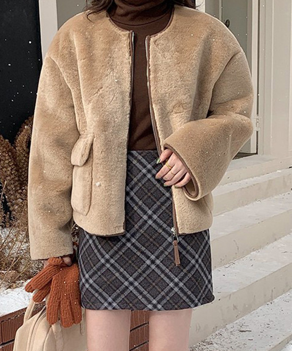 린유 라운드넥 심플 러블리 퍼 캐주얼 배색 라인 데일리 자켓