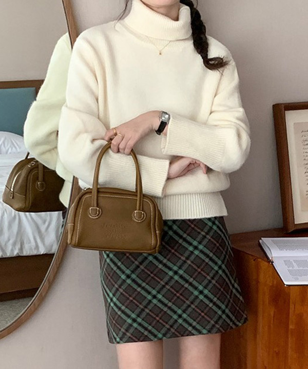 랑드 심플 폴라넥 캐주얼 데일리 무지 기본 니트 탑