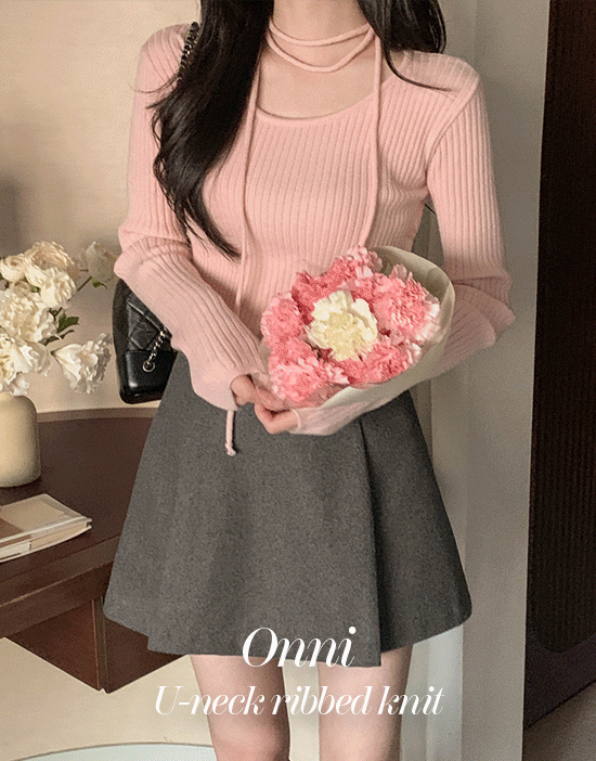 온니 유넥 골지 니트(겨울/초커set/버튼/트임/슬림핏/데일리룩/데이트룩)