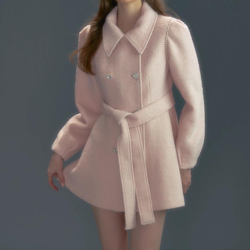 퍼프 울 코트 핸드메이드 카라넥 연핑크 핸드메이드 반코트