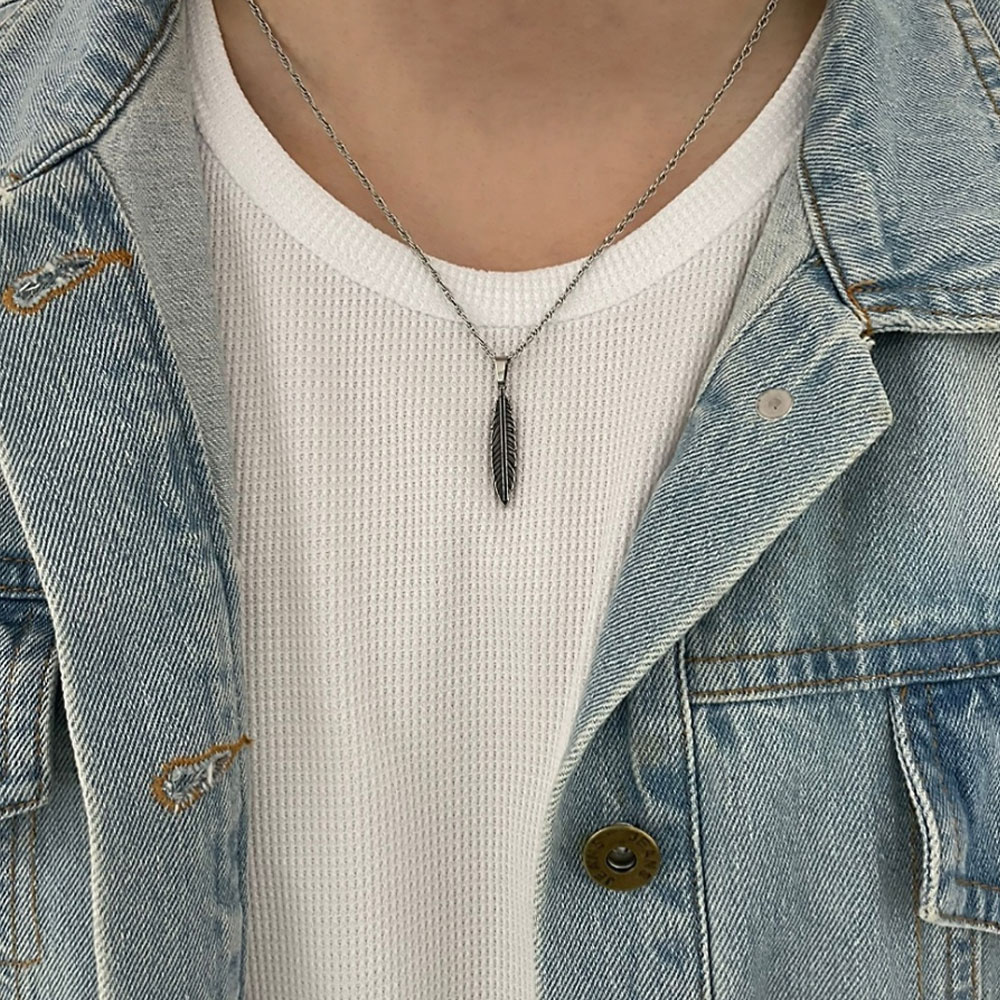 [루크문] 우지 슬림 깃털 써지컬스틸 체인 목걸이 / WOOZI'S SLIM FEATHER CHAIN NECKLACE