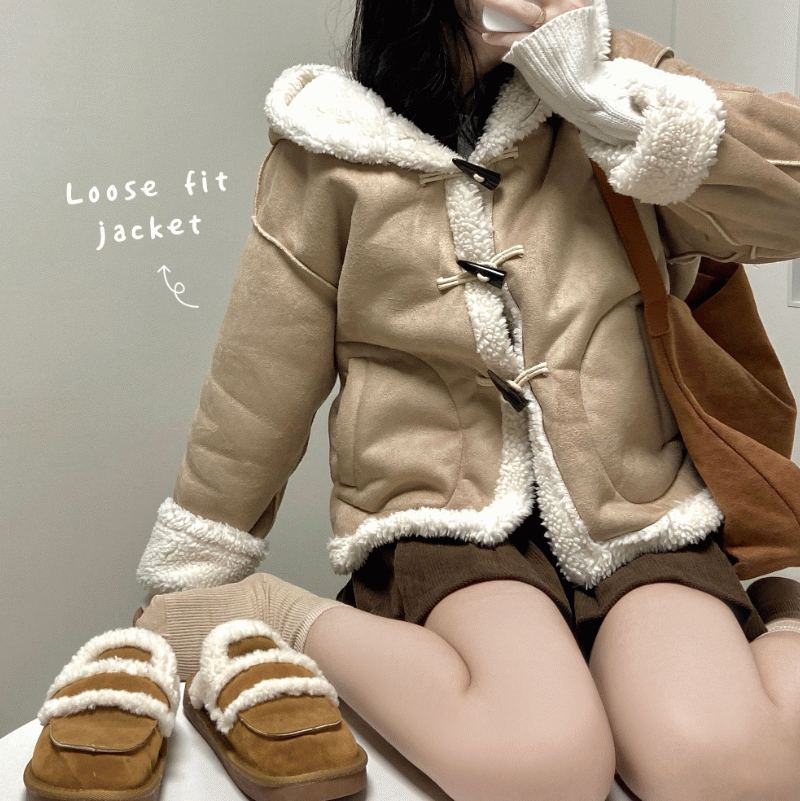 [브랜드퀄/왕따뜻🤎] 케키 스웨이드 떡볶이 양털후드 무스탕 코트 자켓 (2color)