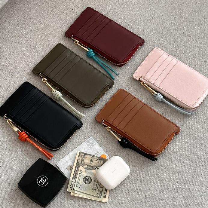 미우 소가죽 꼬임스트랩 배색 카드지갑 지퍼지갑 슬림지갑