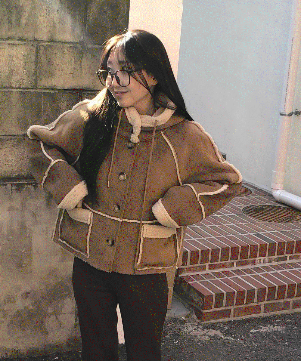마조 후드 하프 무스탕 코트 양털 퍼 점퍼 자켓 겨울