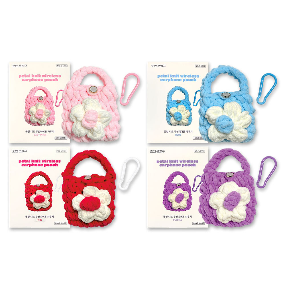 꽃잎 니트 무선이어폰 파우치 키링 4종1세트 키홀더 핸드폰 줄 차 가방 장식 열쇠 고리 단체선물