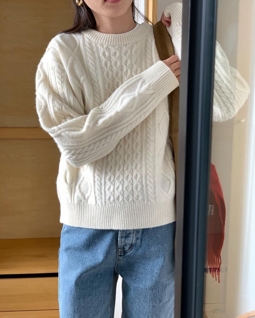 당일(아이,네이비)/디엠버 모헨 피셔 케이블 니트