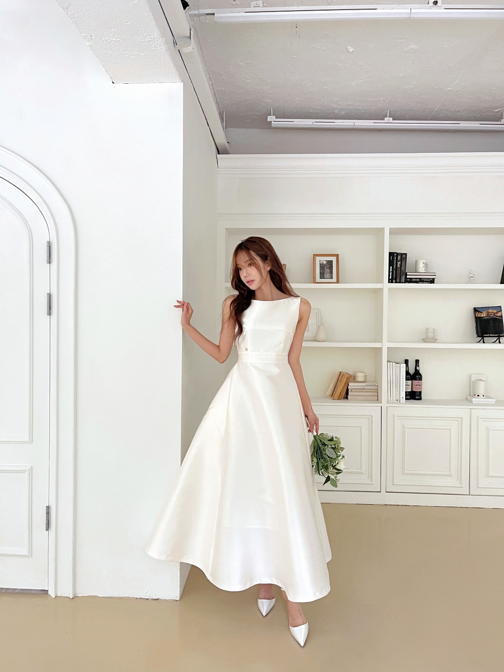 [자체제작/당일출고] 멜로우 셀프웨딩 드레스, 아이보리 파티 피로연 스냅 브라이덜샤워 연주회 피로연 돌잔치 결혼식 2부 원피스