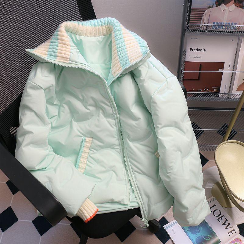 [55-120] 민트 여성 숏패딩 빅사이즈 가벼운 솜패딩 니트 크롭 점퍼 자켓