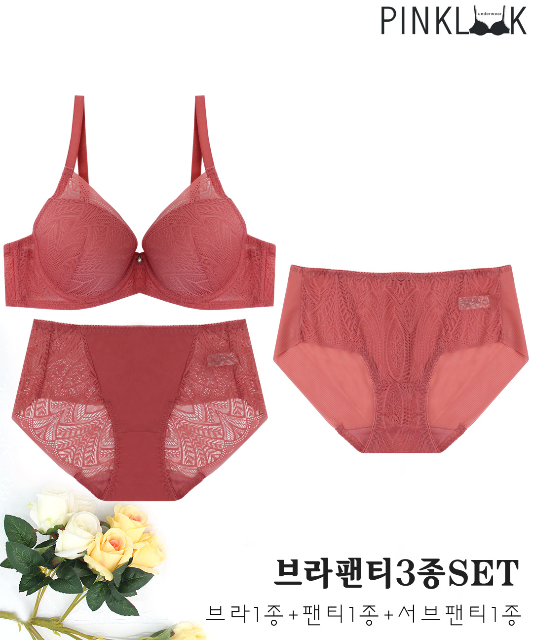 플래시 레이스 볼륨 브라팬티3종세트/브릭로즈