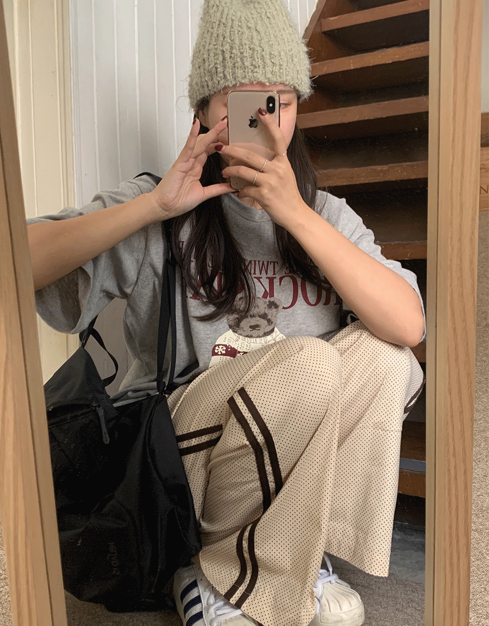 키치 도트 땡땡이 와이드 나일론 밴딩 트랙팬츠 - 2color
