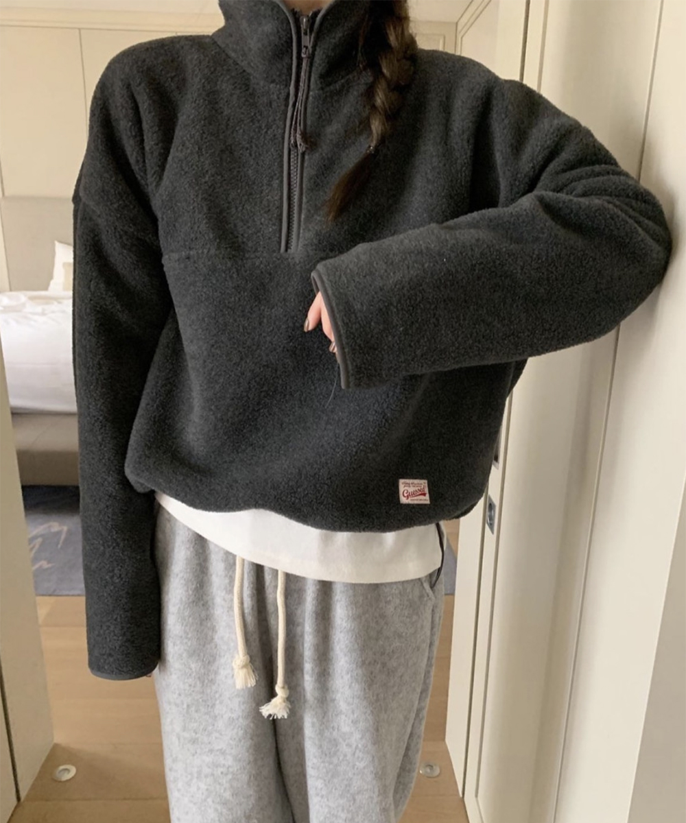 [당일 네이비]멜라운지 에브리 후리스 반집업 (3col) mellounge