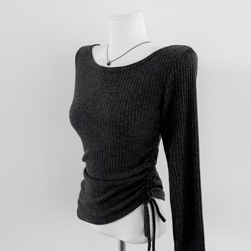 💥5천장 돌파🏆날씬/여리핏🖤오프숄더 보트넥 셔링 스트링 슬림핏 골지 티셔츠