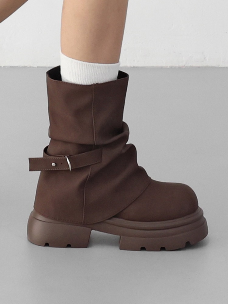 가웬 레그워머st 버클 통굽 힙스터 바이크 루즈핏 앵클 부츠(6.3cm) 12129