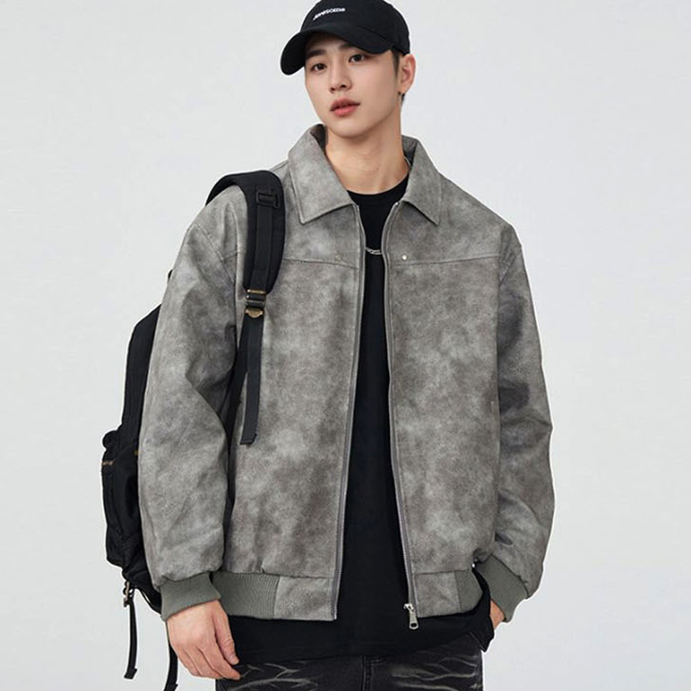 남자 루즈핏 캐주얼 가죽 카라 자켓 LD-JKA-SSIS666-진그레이