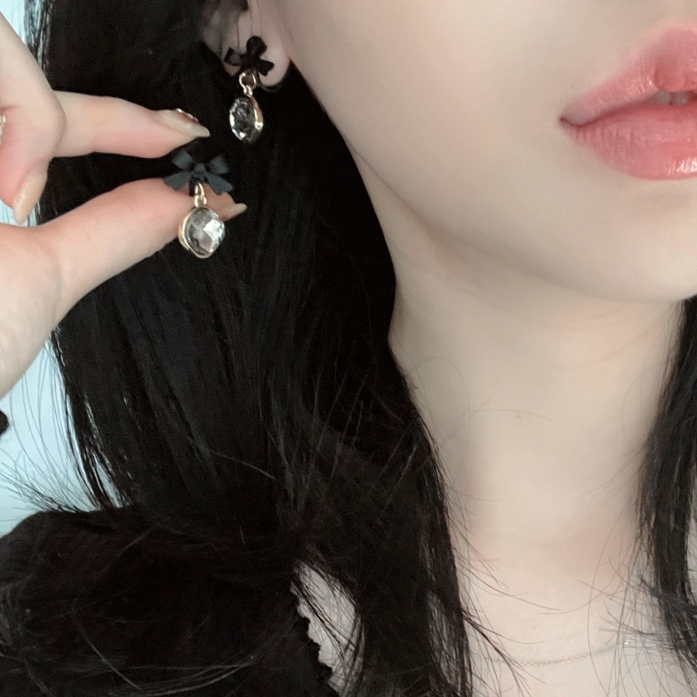 💛당일출고💛 블랙 리본 큐빅 드롭 귀찌 귀걸이 발레코어 하이틴 이어커프