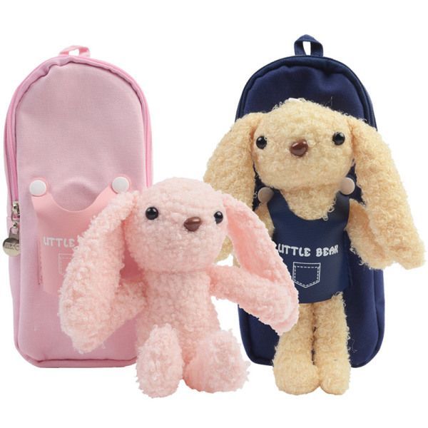 토끼인형 달린 필통 색상 랜덤 봉제인형 파우치 귀여운 동물 여자아이 초등학생 신학기 단체 연말 선물