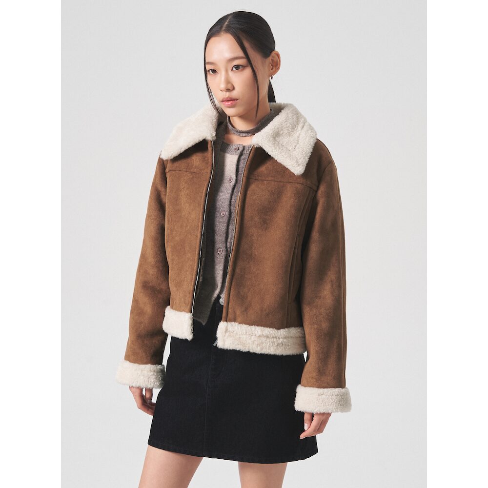 숏 무스탕 집업 점퍼 옐로이시 브라운 (324Y3VLY2B)