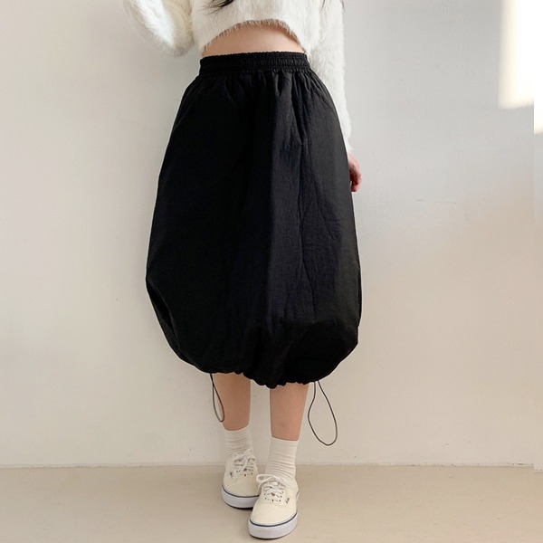 스노우 벌룬스커트)스트링끈조절/스트링스커트/허리밴딩/풍선치마/벌룬치마/롱스커트/겨울신상/플레어스커트/블랙/검정색/크림