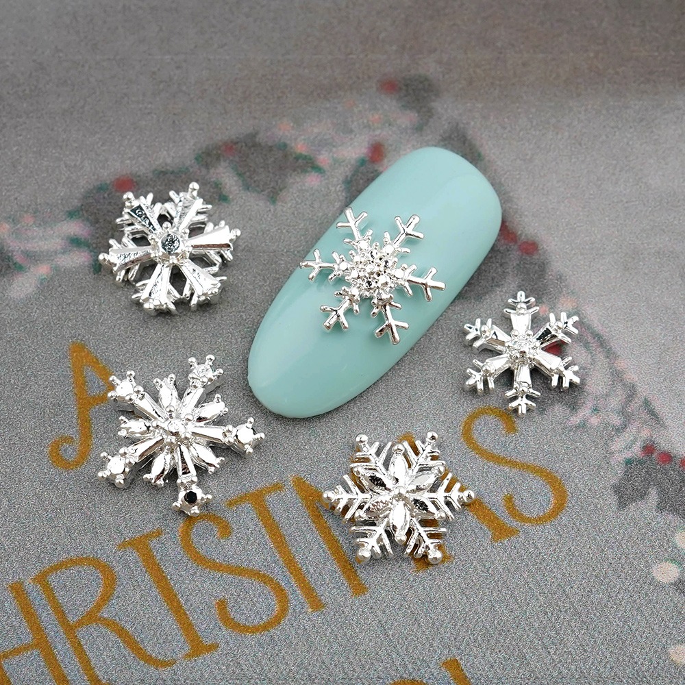 윈터 네일파츠-32 10개입 눈꽃 메탈 실버 크리스마스