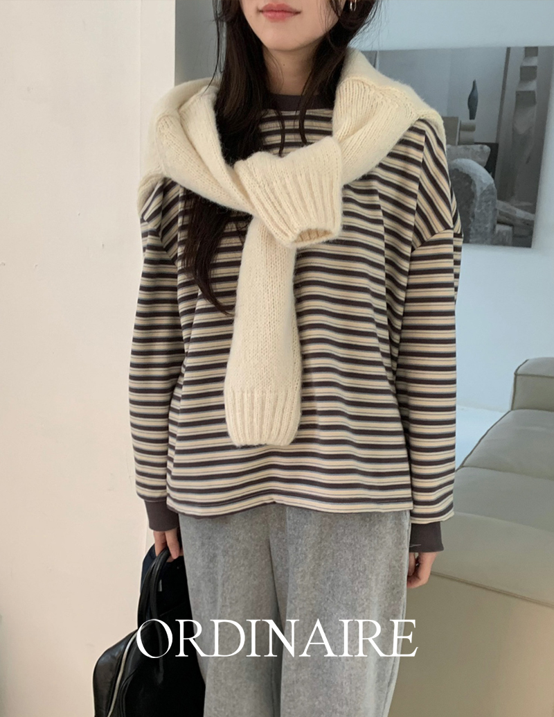 [ordinaire] 로드 스트라이프 티셔츠 (베이지/단독주문시오늘출발)