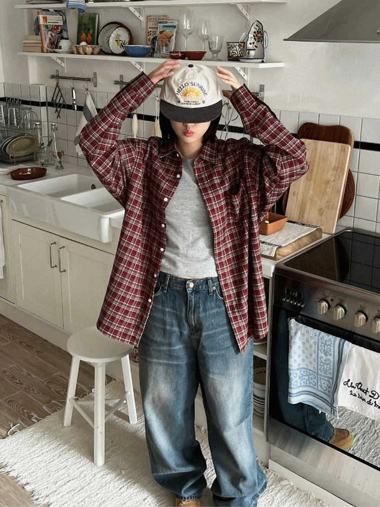 유니섹스 윈터 빈티지 오버핏 체크셔츠 루즈핏 남방