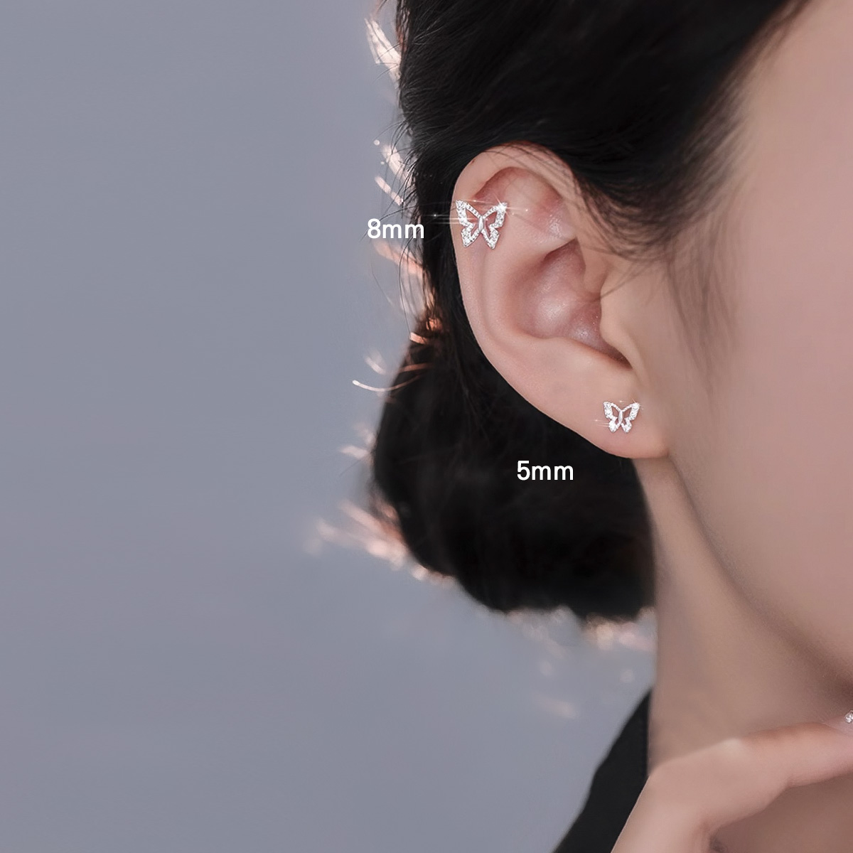 [당일출고] 실버925 버터플라이 나비 크리스탈 큐빅 포인트 2Size 데일리 여성 스터드 귀걸이 [실버] N018