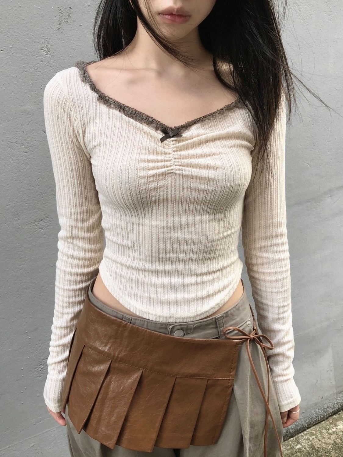 earl grey lace-neck top (3color) / 얼그레이 레이스넥 탑