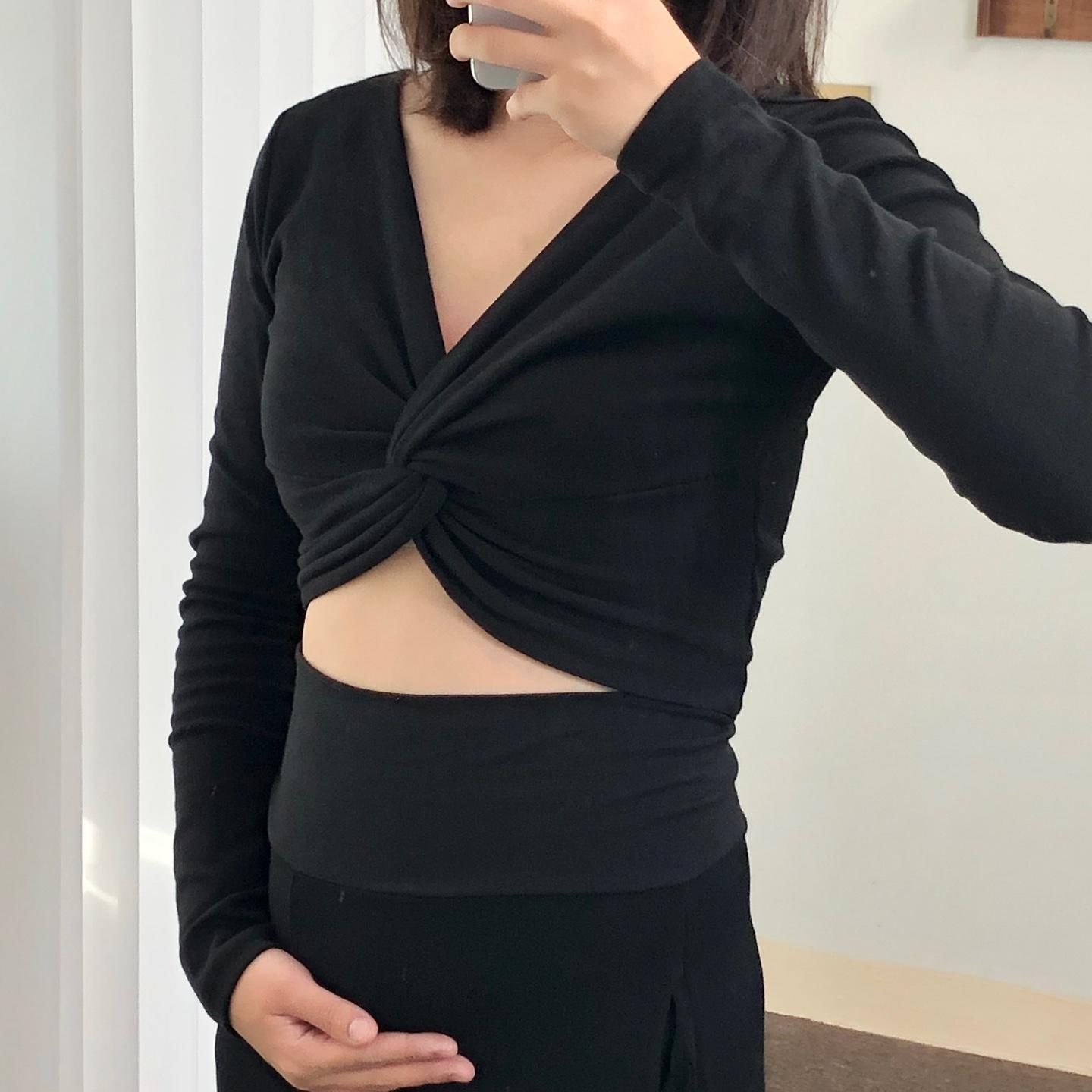 [스판굿 국내제작✨] 만삭사진 꼬임 크롭티 만삭촬영 주수사진 요가복 코튼 스판 심플 임산부 임부복 만삭티셔츠