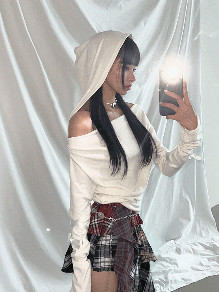 [주문폭주,58차 입고] 스트링 오프숄더 와이드후드 티셔츠