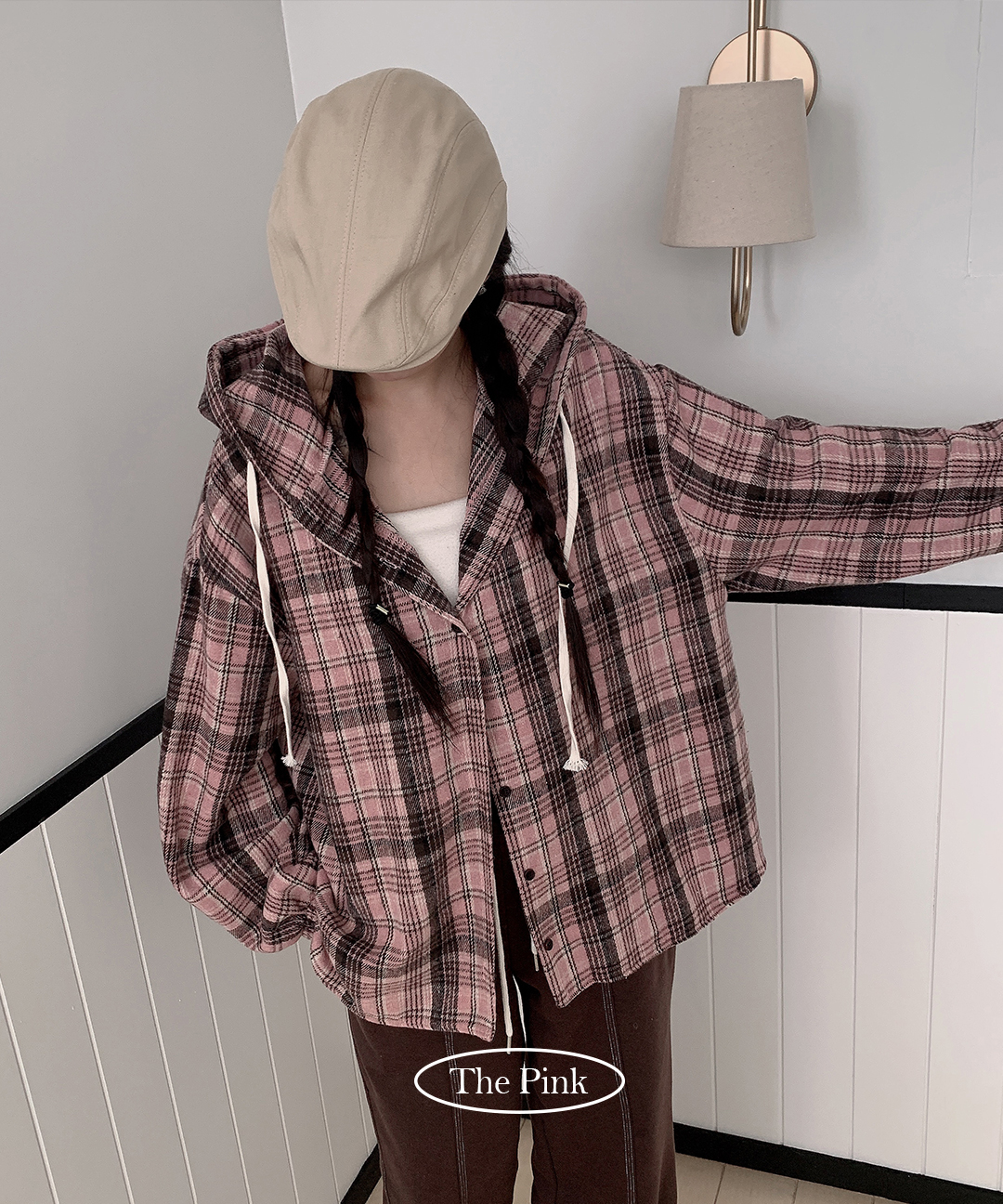 [휘뚤마뚤템-!/레이어드/여리핏] 븐디 오버핏 배색 체크 후드 남방 셔츠 (3color)
