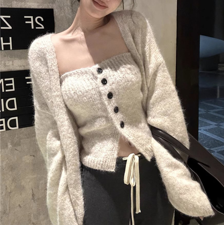 (당일출고/set) 오프숄더 밴딩 골지 슬림핏 크롭 니트 연말룩 파티룩 크리스마스룩 튜브탑 탱크탑 오버핏 루즈핏 롱 하프 미디 가디건 투피스 세트 5color