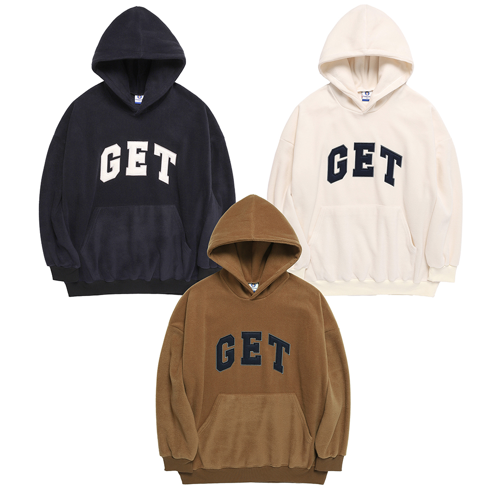 [캠핑룩추천🏕️] 겟 후리스 후드 맨투맨 3color 아이 카멜 블랙 레터링 오버핏 플리스 따뜻한 겨울 후드티 캠핑 긴팔 GET 패치 포켓 학생 스카룩 놀이공원 남여공용
