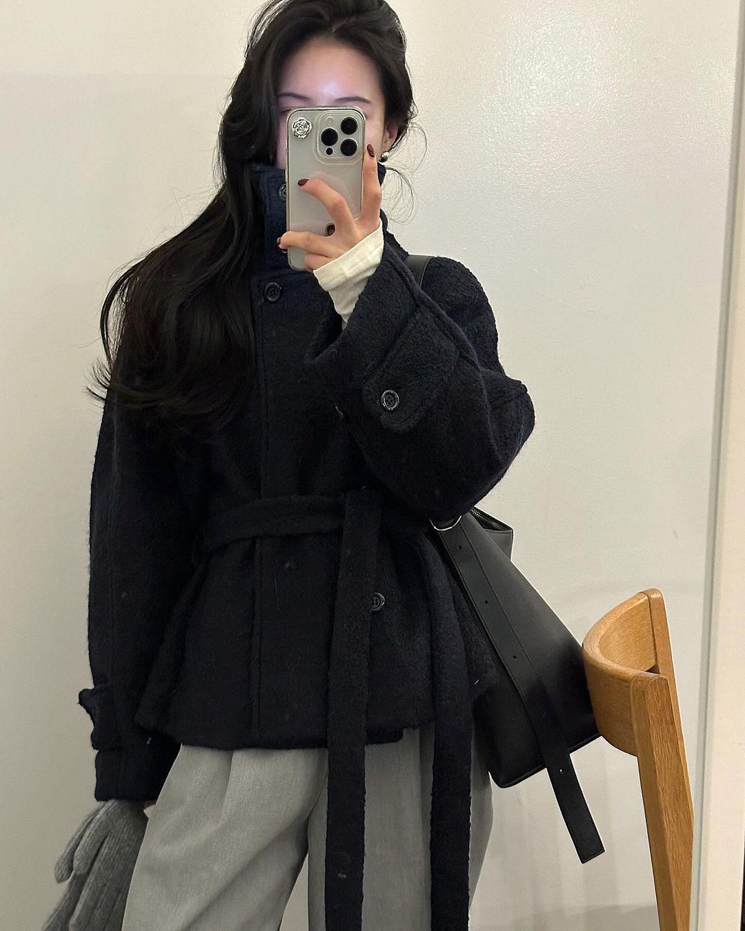 리멜디 여성 겨울 터틀넥 하객룩 출근룩 오피스룩 울 오버핏 루즈핏 랩 리본 하프 더블 부클 코트