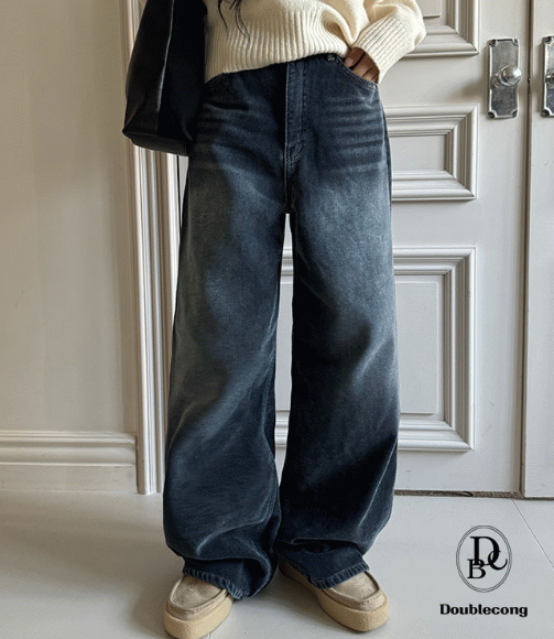 [로우라이즈🥨데일리룩]이립 기모 와이드 일자 데님 팬츠