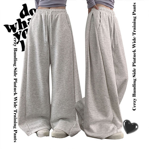 [2size] 커지 하이웨스트 밴딩 옆핀턱 와이드 트레이닝 팬츠 (4color)