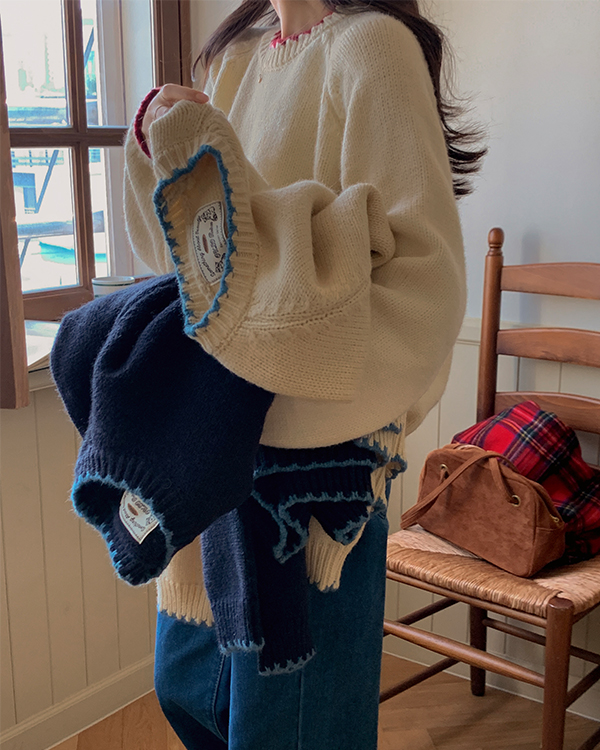 [무배][BEST/1만장돌파]포그 울 배색 겨울 니트