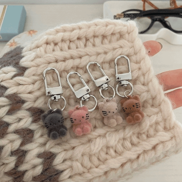 [1+1할인/4컬러] 미니 벨벳 고양이 키링 가방꾸미기 휴대폰고리 폰꾸미기 백꾸 폰꾸