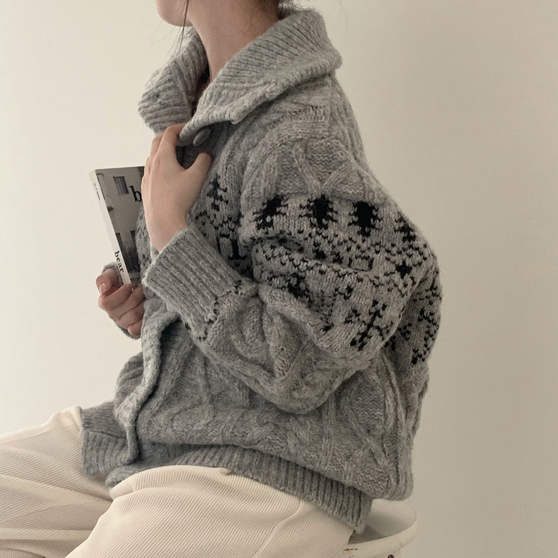 [굿퀄리티☃️/인기신상/그레이 당일출고!] 스노우 노르딕 하이넥 오버핏 니트 가디건 - cd