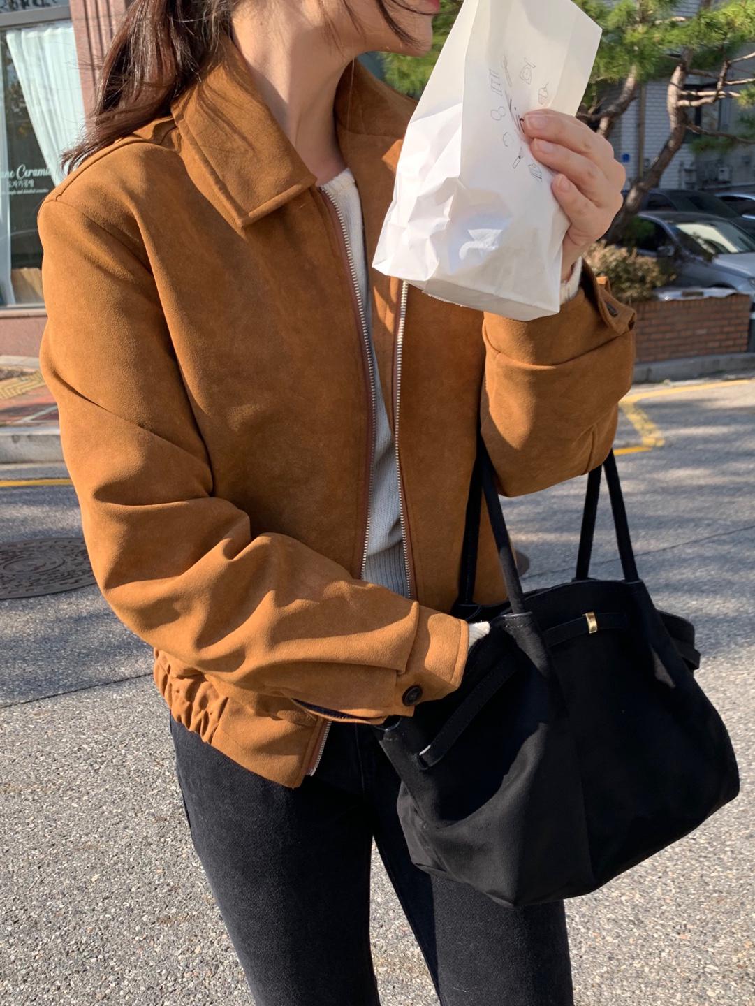 [4온스누빔] 루즈핏 스웨이드 자켓 블루종 카라 집업 숏 크롭 점퍼 겨울
