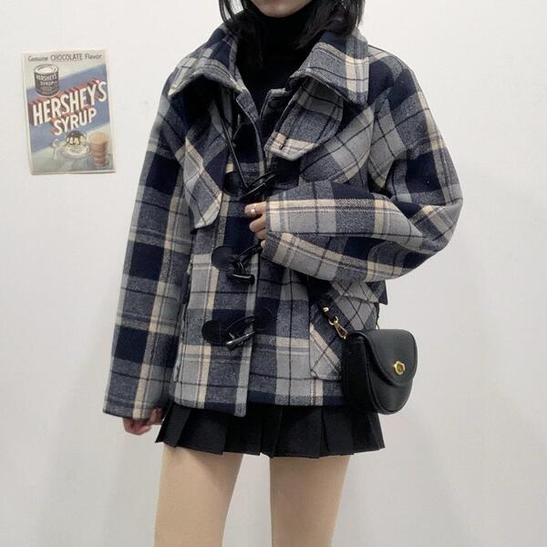체크 빅카라 숏 떡복이 코트 (당일출고)