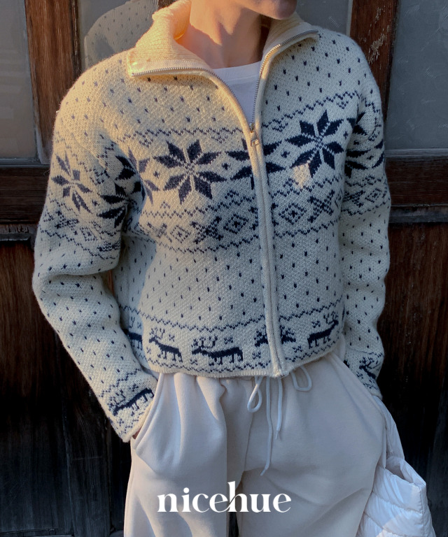 [SALE/2천장돌파] 노르딕 집업 가디건 3color / 겨울 크롭 니트 가을 스노우 카라 눈꽃