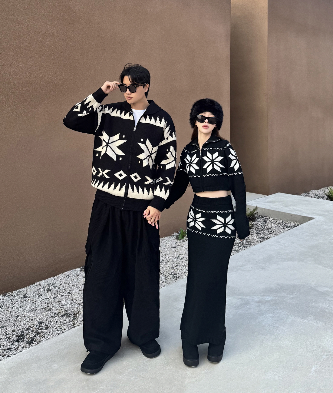 브랜드퀄🩶[단독코디/커플세트] 눈꽃 노르딕 크롭 투피스 울 니트 집업 커플룩 시밀러룩 코디세트 데이트룩 롱스커트 세트 오버핏 겨울니트 커플니트 크롭니트 세트가격