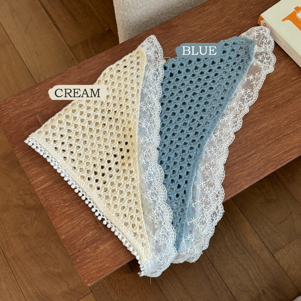 [러블리무드] 에로우 네트 레이스 니트 헤어 두건 2color