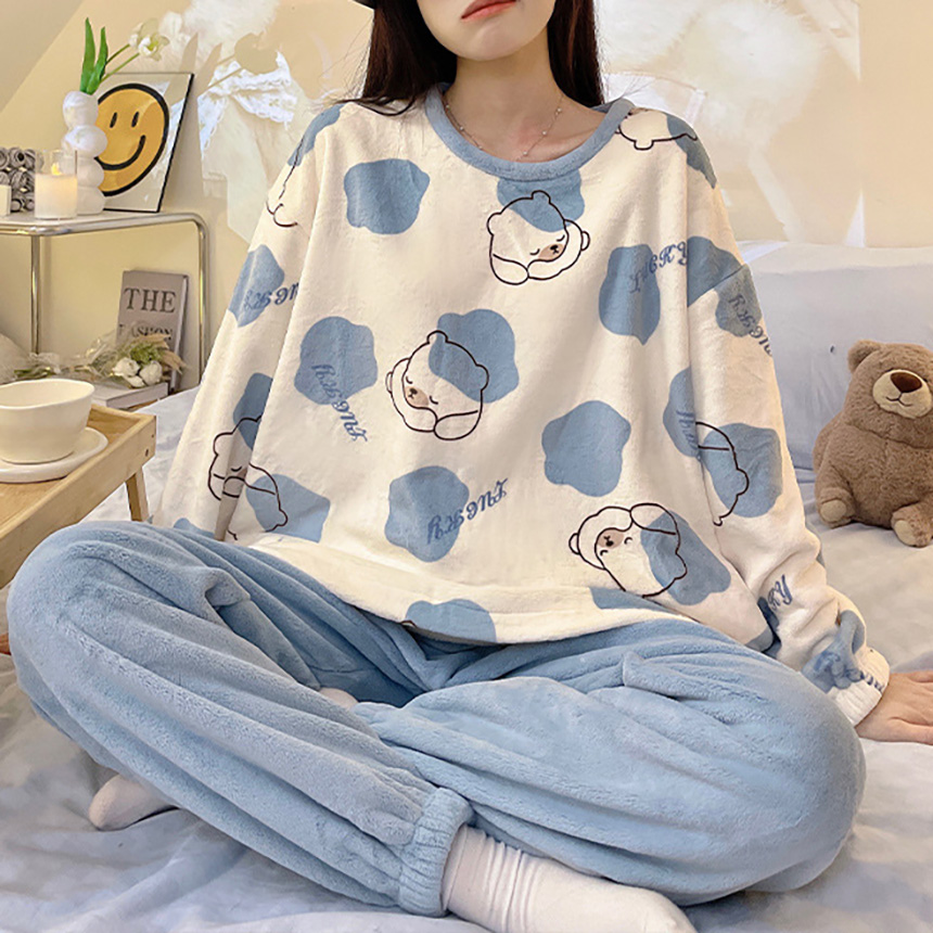 여성 여자 겨울 데일리 따뜻한 극세사 귀여운 홈웨어 파자마 수면 잠옷 세트 프린윈터시보리잠옷세트