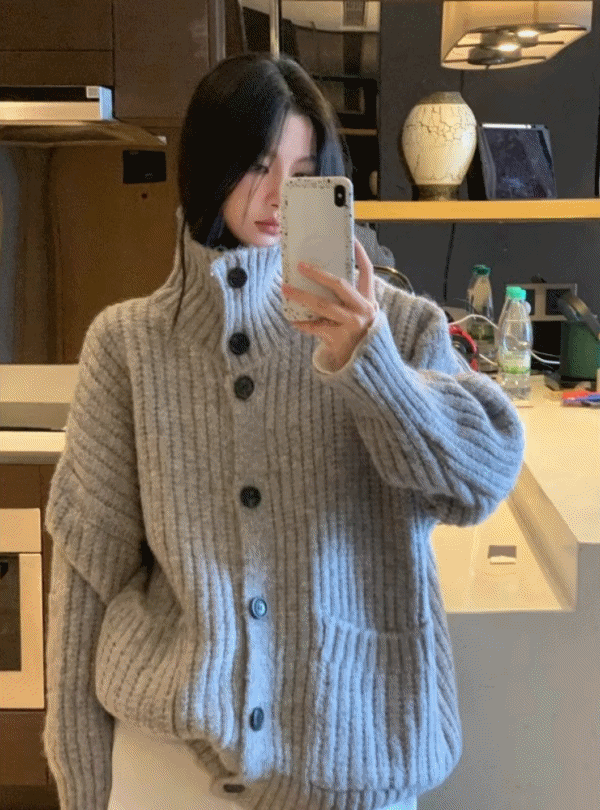 더블 포켓 오버핏 루즈핏 니트 스웨터 가디건