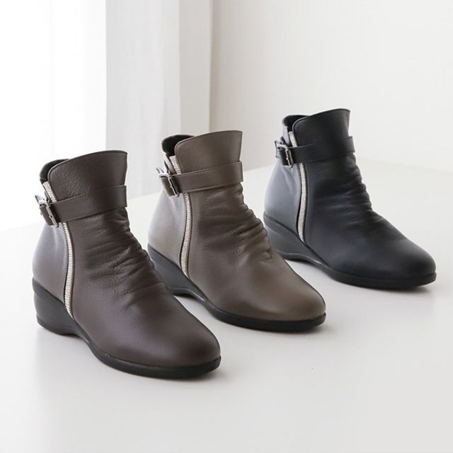 여자부츠 국내제작 소가죽 버클포인트 웨지굽 여성 앵클 부츠 여성부츠 여자앵클 여성앵클 가죽부츠