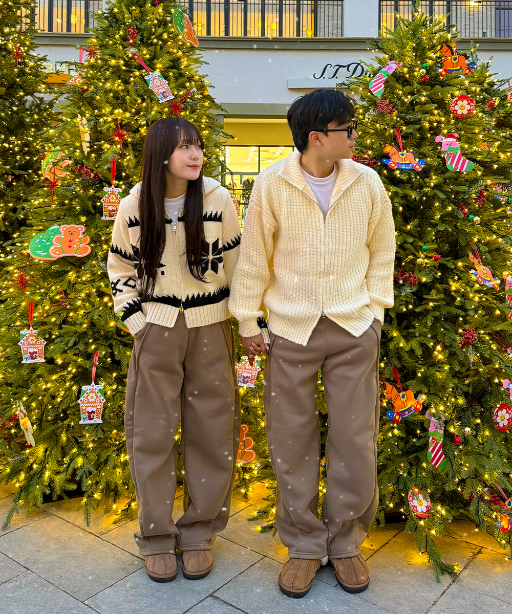 [단독/3컬러] 메리 크리스마스 눈꽃 후드 투웨이 집업 오버핏 노르딕 니트 가디건 겨울 커플룩 커플 시밀러룩 데이트 연말룩
